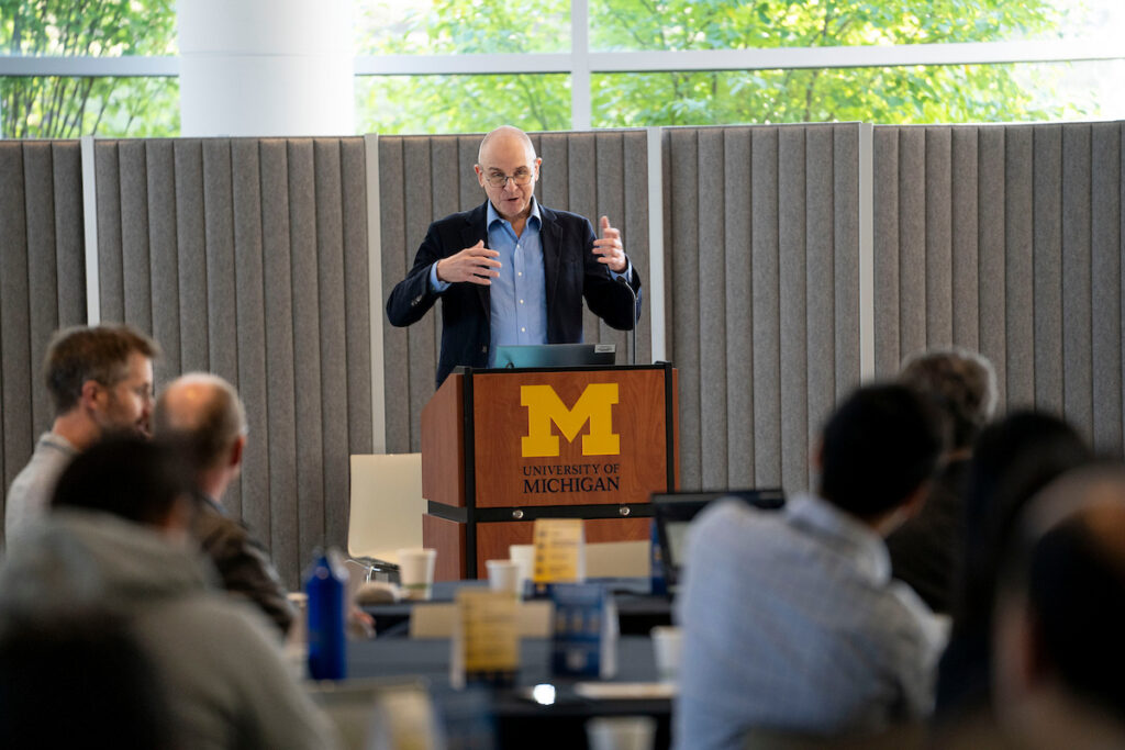 The event kicked off with opening remarks from from Dr. Eric Michielssen, Associate Dean for Research at the College of Engineering and Louise Ganiard Johnson Professor of Electrical Engineering and Computer Science. This was followed by a series of Lightning Talks moderated by Rada Milhalcea, PhD, Janice M. Jenkins Collegiate Professor of Computer Science and Engineering, Professor of Electrical Engineering and Computer Science, e-HAIL Co-lead Convener, that highlighted the work of four U-M faculty. The talks and participants included: