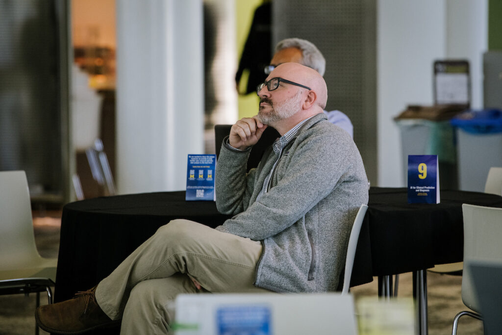 On Friday, September 12, more than 250 faculty, staff, and students from the Medical School, the College of Engineering, and a range of other Schools and Colleges, attended the 4th annual AI & Health Symposium. This year, the symposium was a partnership with AI & Digital Health Innovation (AI&DHI), with additional support from the Institute for Healthcare Policy and Innovation (IHPI). Accelerating interdisciplinary collaborations through opportunities for engagement around AI & health research is a major focus of the e-HAIL initiative, and the symposium was set up to maximize learning from and connecting with fellow faculty researchers interested or working in this field.